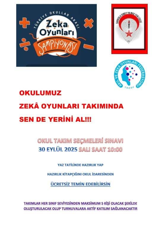 OKULUMUZ ZEKA OYUNLARI TAKIMINDA SEN DE YERİNİ AL!